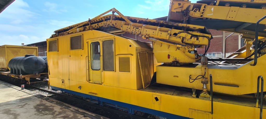 Manufacturer No.2692. Year 1986 / Reconditioned in 2016. Gauge 1,435mm. Length 30,015mm. Width 2,950mm. Height 4,195mm. Gross weight 101,8 t. Axle load 22 t. Max cant. 160mm Working min. radius 250m. Towed max. speed 60 Km/h. Working speed 600 m/h. Wheel diameter 920mm. Numbers axle 5 (1 bogie + 2 powered + 1 carrying). Caterpillar Engine Type 3412 E. S/No.BDT05670. 760/567 HP/Kw. Stiebel pump drive Type 4325.F3.09902.97 year 2013. S/No.701804. 900Kw. Knorr Bremse compressor model VV100/100, 5.2Kw. 800lt/mn capacity. Fiac compressor model AB410, 2.25Kw. 397lt/mn capacity. Perkins/CGM generator model 14p, 400v/14kVa. Marelli generator model MJB250, 400v/250kVa.